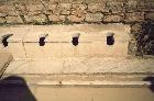 Much rougher marble public toilets next to the main processional way from the harbor gate, in Korinthos, Greece. These