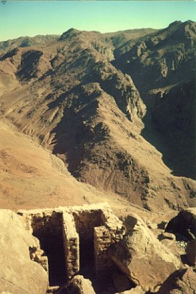 Pit toilet constructed from local rubble, just below the summit of Mount Sinai, Egypt. Not actually from the era of Moses, thought to be